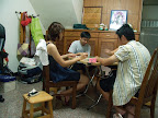 心怡是坐我下家呀~而我也使出了閃電抓牌手...........那那...那..是誰按的快門咧~沒錯!是我家的不專業小小攝影師~琳琳..瞧~他挺有天份的~